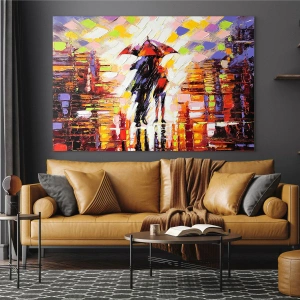Glastavla - Bild på glas - Tillsammans genom natten och regnet - 50x70 cm