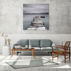 "Du kan gå imorgon" är ett förslag för dig som söker en dekoration med en djup, reflekterande ton. En träpir vid en sjö på en dimmig dag är en bild som uppmuntrar dig att stanna upp en stund och fördjupa dig i en atmosfär av tystnad, lugn och harmoni.