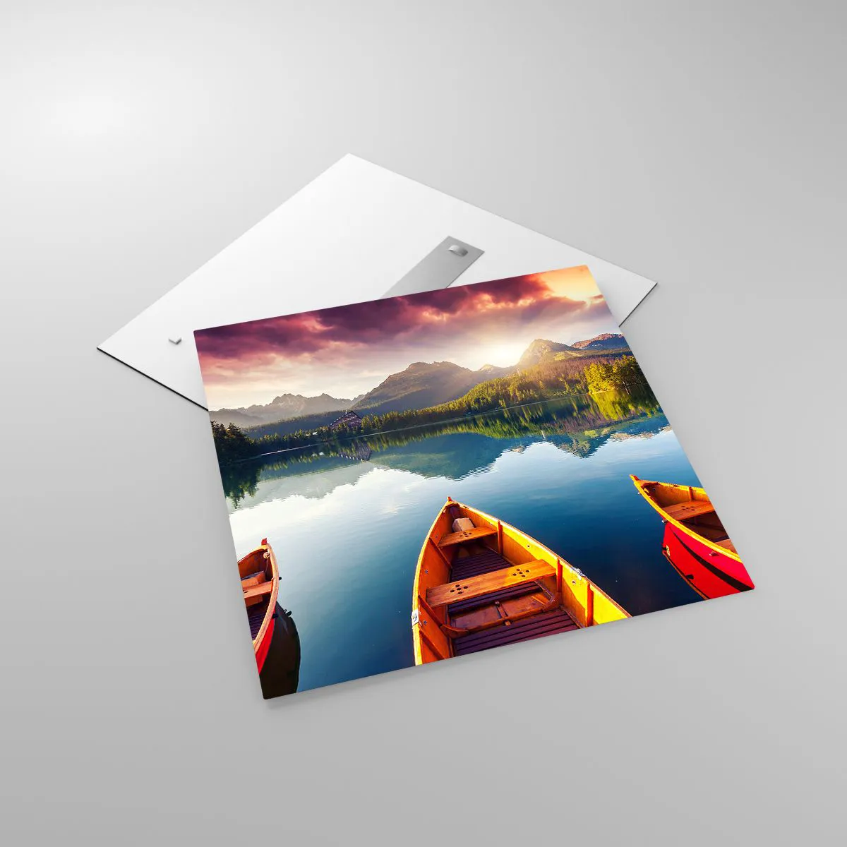 Varje bild på glas är utrustad med en permanent monterad metallhängare eller hängare - vilket möjliggör bekväm installation