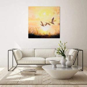 Bild på glas är tillverkad på 4mm tjockt glas. Glaskanterna har en trapetsformad matt fas. Bilden är säker i användning och klar att hängas upp - har metallöglor fastsatta på bildens baksida samt distanser av skum som säkerställer ett jämnt avstånd mellan bilden och väggen.