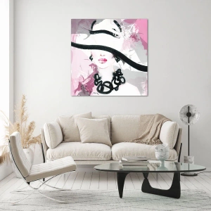 Glastavla - Bild på glas - En damportätt i svart och rosa - 50x70 cm