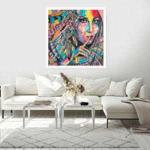 • Kvinna, Kvinnoporträtt, Boho, Abstrakt, människor, mode, För kontoret, För matsalen, För hallen, För vardagsrummet, För sovrummet, , Färgrik, Kvadratisk
