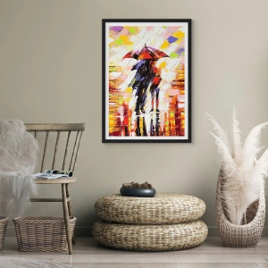 - Denna poster föreställer ett par under ett paraply i en färgglad, abstrakt miljö. Ett konstnärligt tillskott till alla moderna och romantiska inredningar. Produkten levereras med en svart ram på 50x70 cm.