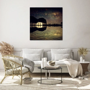 Glastavla - Bild på glas - Nattscen med en fullmåne som speglas i vattnet - 70x50cm - En natt i världens ände - Modern väggdekoration för vardagsrum och sovrum ARTTOR