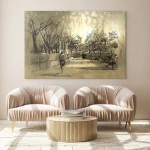 Glastavla - Bild på glas - En stund fångad med penna - 160x50 cm