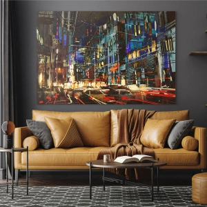 Glastavla - Bild på glas - Gatans kvällsbuller - 30x30 cm