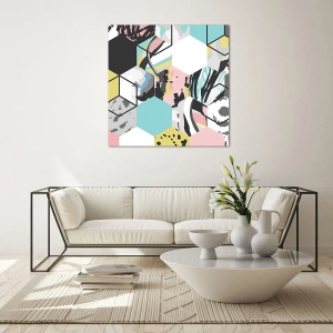Glastavla - Bild på glas - Sexkanter och kuber i sex färger - 50x50 cm