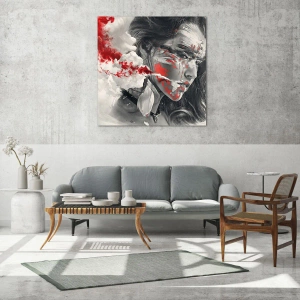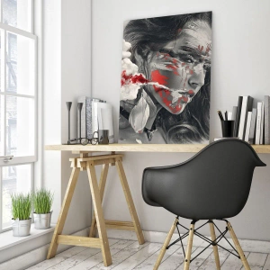 Glastavla - Bild på glas - Röd-vit absurdhet - 50x70 cm