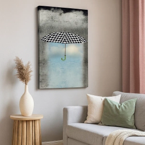 Denna canvastavla är ett utmärkt val för konstälskare och ovanliga motiv. Ett rutigt paraply över ett regnigt landskap är en dekoration som väcker nyfikenhet och inspirerar, samtidigt som den introducerar harmoni och uttrycksfullhet i interiören. Denna dekoration ger modernitet och elegans till interiörer, vilket gör dem mer uttrycksfulla och intressanta.