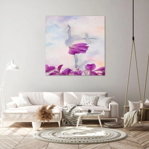 Denna canvastavla är ett utmärkt alternativ för dig som vill berika sin interiör med konstelement inspirerade av naturen och delikatess. "Dansare i en blommig klänning mot pastellbakgrund" är en dekoration som ger harmoni, glädje och unik stil till din interiör.