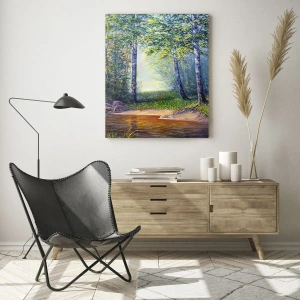 Välj en skogsbäck omgiven av träd i solens strålar för att ge naturlig skönhet, lugn och fräschör till ditt hem. Låt denna målning bli en inspiration och lite avkoppling i din vardag.