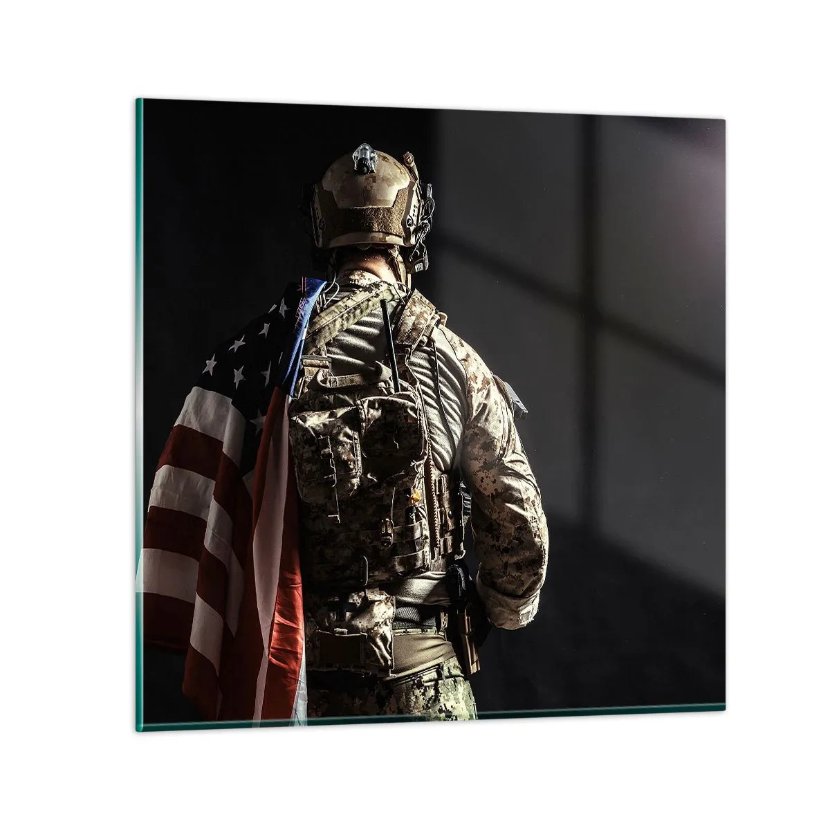 • Soldat, amerikanska flaggan, kommandosoldat, Människor, militär, Till hallen, Till vardagsrummet Svart, Kvadratisk