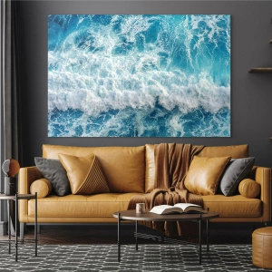 Blå vågor som slår mot stranden är en extraordinär syn som förtjusar med sin dynamik och färgdjup. Denna glasbild fångar perfekt naturens skönhet och visar havets rastlösa natur och dess extraordinära harmoni. Turkos vatten i kombination med vågornas vita skum skapar en unik kontrast som drar till sig uppmärksamhet och introducerar en unik atmosfär i interiören.