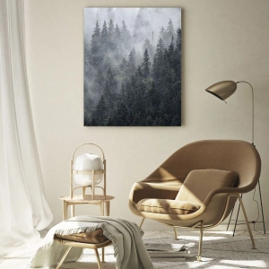 Glastavla - Bild på glas - Gryning i skogen - 120x80 cm
