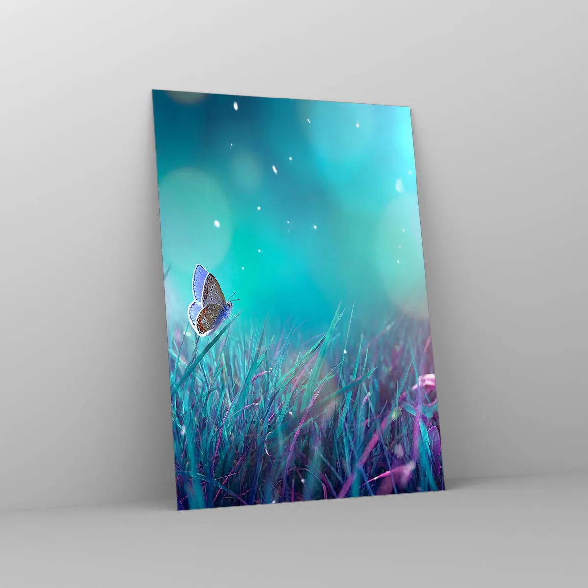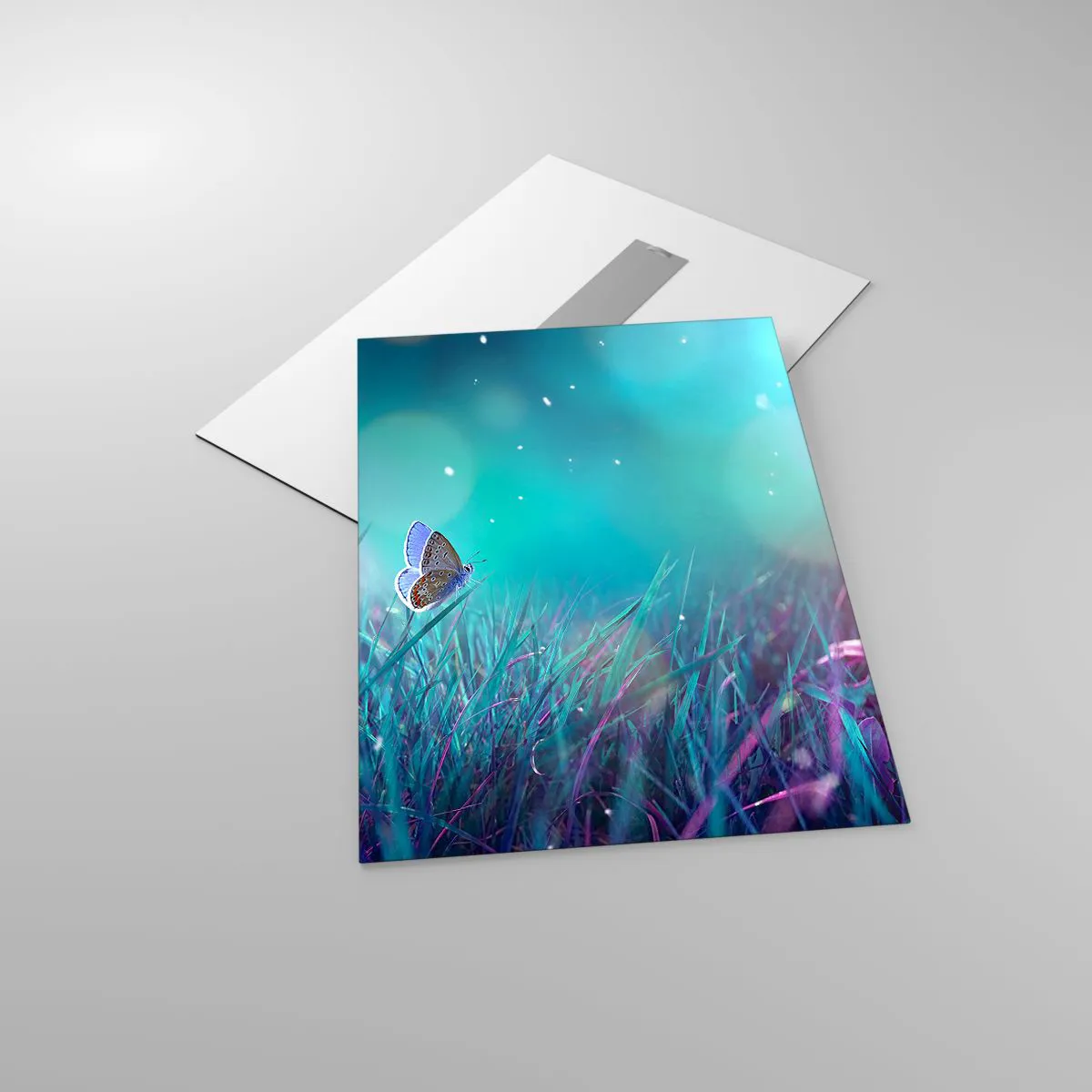 Bild på glas är tillverkad på 4mm tjockt glas. Glaskanterna har en trapetsformad matt fas. Bilden är säker i användning och klar att hängas upp - har metallöglor fastsatta på bildens baksida samt distanser av skum som säkerställer ett jämnt avstånd mellan bilden och väggen.