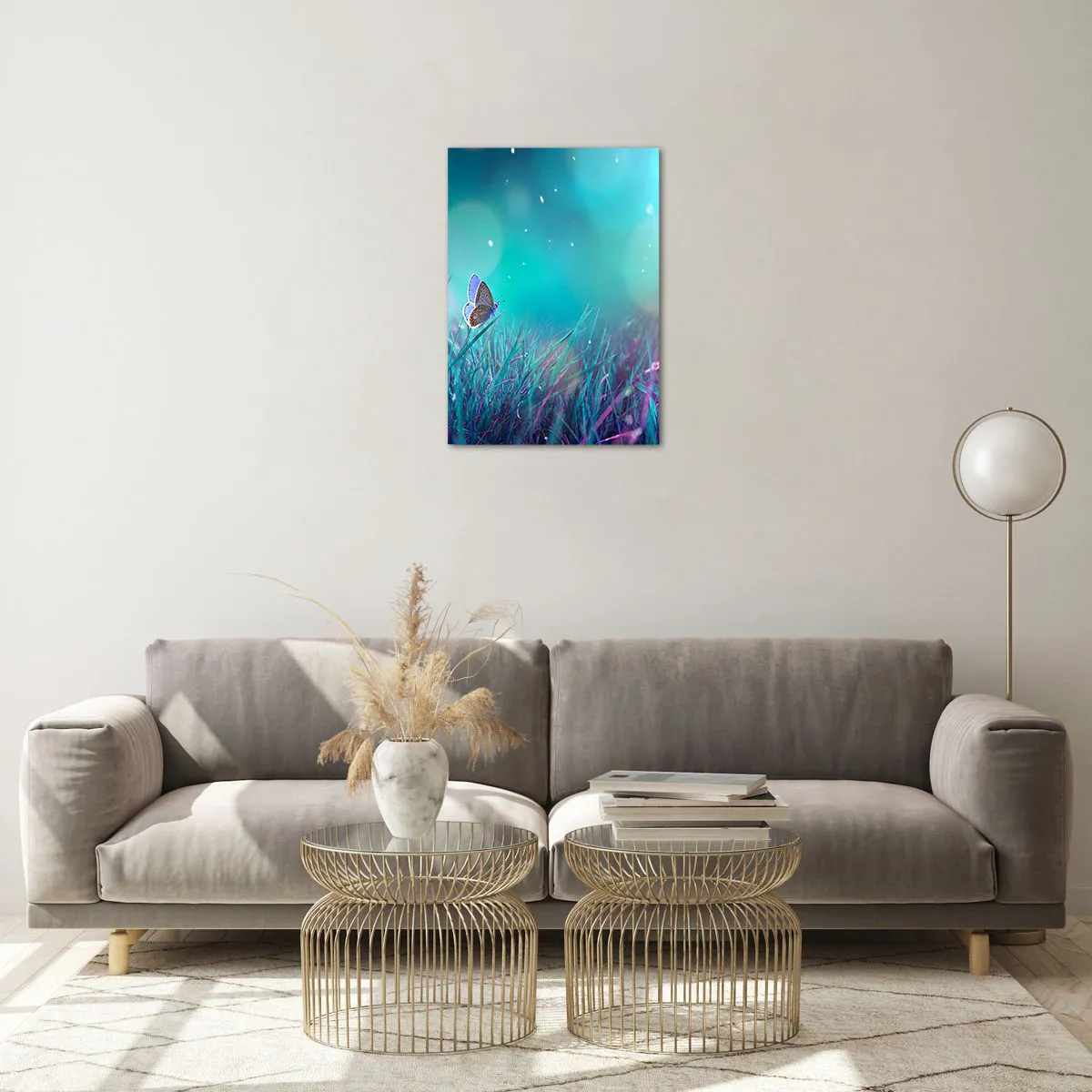 Installationen är extremt enkel och lätt, glasbilden är redo att hängas på väggen, den är utrustad med en monterad metallhängare för enkel montering och skumdistanser