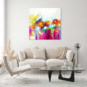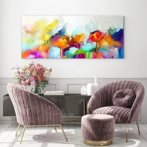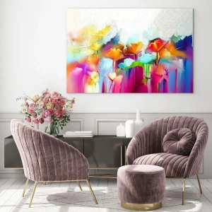 Glastavla - Bild på glas - Regnbågen blommar - 120x80 cm