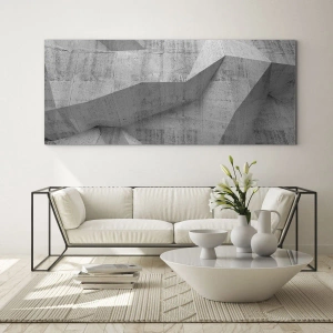 "En riktig utmaning" är en modern målning på glas som mäter 70x50 cm, som avbildar betongens geometriska struktur i eleganta grå nyanser. Denna målning är ett perfekt exempel på minimalism och industriell stil och är det perfekta tillskottet till moderna interiörer.