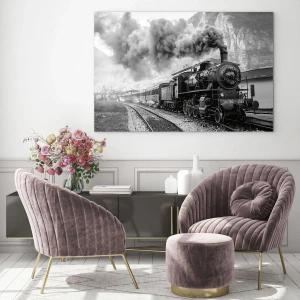 Glastavla - Bild på glas - Det står ett lok på stationen... - 30x30 cm