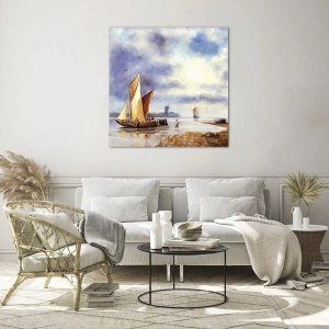Glastavla - Bild på glas - Seglarnas hemkomst - 50x50 cm