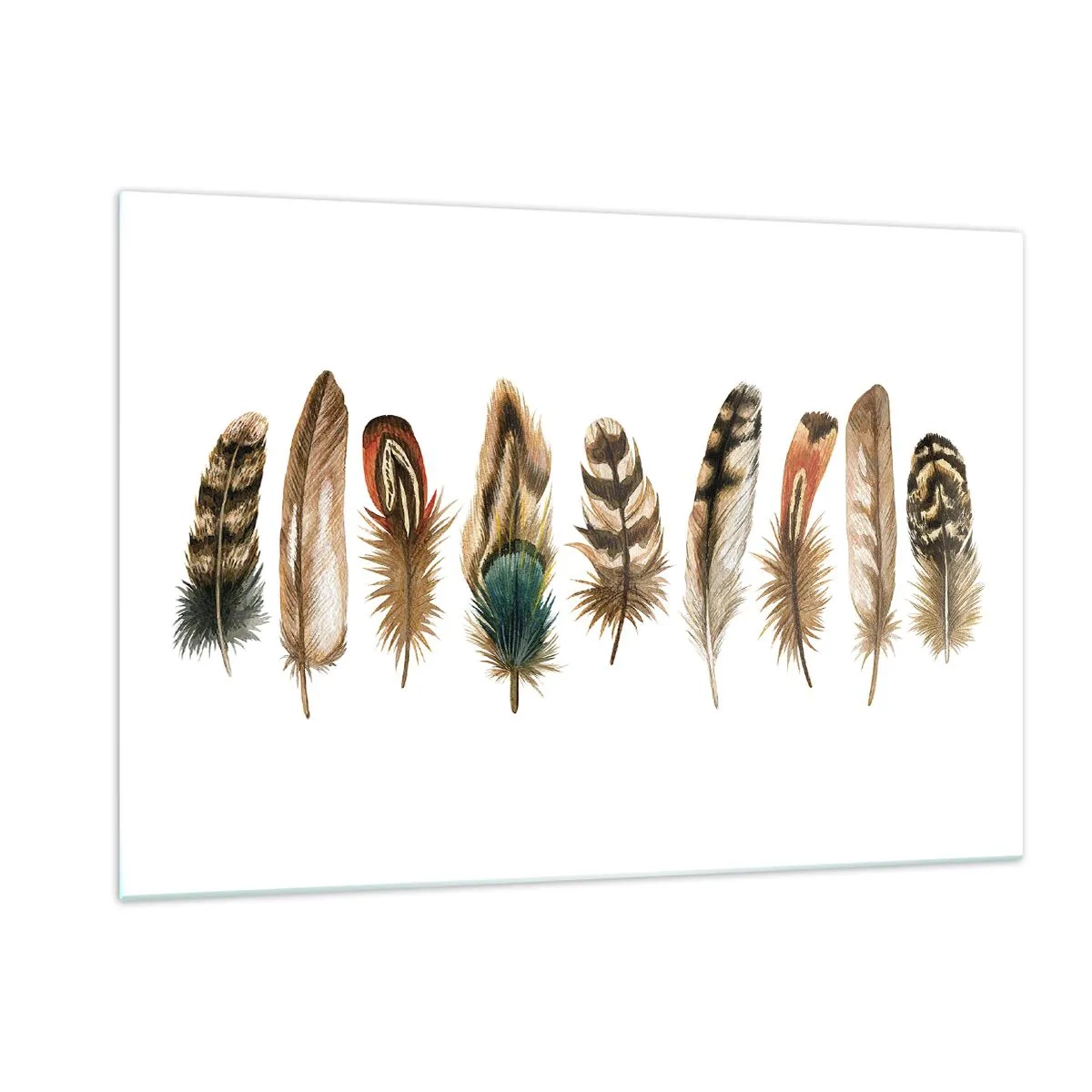 Glastavla - Bild på glas - Fjädervariation - 120x80 cm