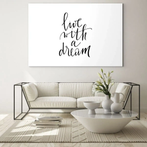 Glastavla - Bild på glas - Lev med en dröm-citat i elegant kalligrafi - 70x50cm - Of course - Modern väggdekoration för vardagsrum och sovrum ARTTOR