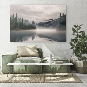 Glastavla - Bild på glas - I förundran, i dimman - 60x60 cm