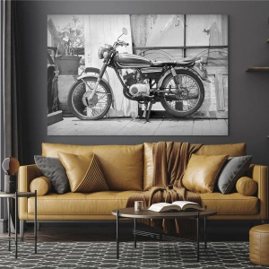 • Vintage motorcykel, motor, resor, Svart och vitt, Automotive, Vintage och retro, För kontoret, För arbetsrummet, För matsalen, För ungdomsrummet, För hallen, För vardagsrummet, För sovrummet, Grå, svart och vit, Vertikal