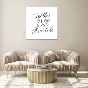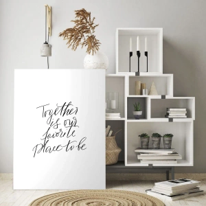 - En målning med en elegant kalligrafisk inskription på vit bakgrund. Dess minimalistiska design och subtila typografi gör denna dekoration till en elegant accent i alla inredningar. Ett utmärkt val för dig som värdesätter enkelhet och modern design.