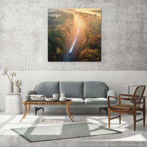 Tryck på glas säkerställer exakta detaljer och framhäver varje element i landskapet: löv, tåg och järnvägsspår. Detta väcker målningen till liv och fångar essensen av en fridfull resa genom den omgivande naturen.