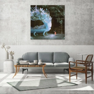 Målningen skapades av ARTTOR med hjälp av tekniken "målning på glas", i ett horisontellt format som mäter 70x50 cm. Tack vare trycket på glas blir färgerna levande, och varje detalj – från bladens struktur till uttrycket i varelsens ögon – får djup och klarhet. Det är en hållbar och elegant form av dekoration som kompletterar många inredningsstilar.