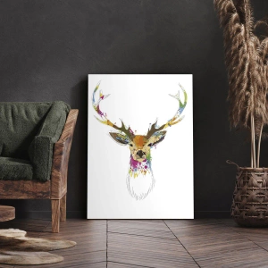 Om du letar efter dekoration som betonar karaktären i din interiör och ger en touch av färg och konstnärligt uttryck, är canvastavlan "Färgglatt hjorthuvud i konstnärlig stil" det perfekta valet.