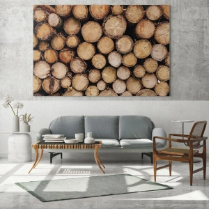 Trämotivet har varit en del av inredningen i åratal och ger dem mysighet, värme och autenticitet. Denna målning domineras av en rå, naturlig stil som harmoniserar perfekt med rustika, skandinaviska och moderna minimalistiska interiörer. De tätt arrangerade trädstammarna skapar en grafisk struktur som kan vara både bakgrund och dekorativ fokuspunkt. Träets varma färger ger harmoni till rummet och betonar naturens kraft.