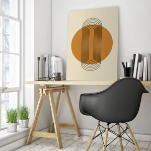 Kontrasten mellan den varma orange nyansen och de svarta linjerna ger energi och djup till kompositionen. Målningen kan tolkas som en symbol för en plan, ett mönster eller en cyklisk rörelse, vilket ger den ytterligare betydelse. Mönstret är enkelt, men ändå mycket effektivt – det fungerar perfekt som en fokuspunkt på en vägg eller som en del av ett större galleri med målningar. Perfekt för vardagsrum, kontor, coworking-utrymmen och interiörer med retro- eller industriella stilelement.