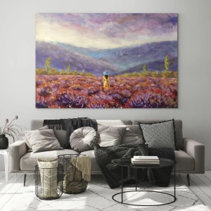 Glastavla - Bild på glas - I lavendelsvärld - 50x50 cm