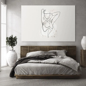 Glastavla - Bild på glas - En kvinnlig silhuett ritad med en linje mot en ljus bakgrund - 70x50cm - Konsten att förföra - Modern väggdekoration för vardagsrum och sovrum ARTTOR