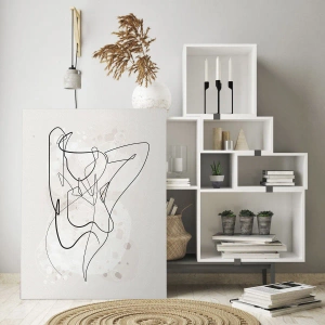 - En abstrakt kvinnlig siluett skapad med en enda linje mot en ljus bakgrund. Målningen utstrålar subtilitet, elegans och diskret minimalism. En idealisk dekoration för interiörer i en modern och konstnärlig stil.