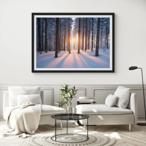 Inramad affisch är klar att hängas på väggen. Utskriften utförs på högkvalitativt PREMIUM-papper med 200g/m2 ytvikt. Den modena och stiliga ramen är tillverkad med 2 cm bredd MDF. Affischens baksida skyddas med en styv HDF-skiva med 2mm tjocklek. Affisch i ram är lätt och utrustad med en ögla för enkel montering. Varje ram är utrustad med en lätt och krossäker transparent ruta av akryl plexiglas.