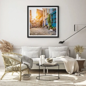 - Denna poster föreställer en charmig gata omgiven av hyreshus som solar sig i den nedgående solen. Det är det perfekta valet för arkitekturentusiaster och de som älskar stämningsfulla platser. Den har en svart ram och mäter 50x70 cm.