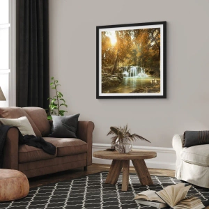 Affisch i svart ram - Höstvattenfall i solljuset - 50x70cm - Parkkaskad - Modern väggdekoration för vardagsrum och sovrum ARTTOR