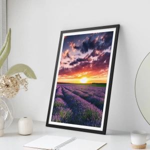 Affisch i svart ram - Lavendelfält vid solnedgången - 50x70cm - Lavandelvärld - Modern väggdekoration för vardagsrum och sovrum ARTTOR