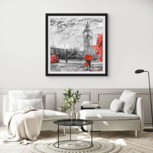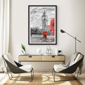 Affisch i svart ram - Klocktorn med rött paraply - 50x70cm - Spännande dag - Modern väggdekoration för vardagsrum och sovrum ARTTOR