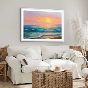 Affisch i vit ram - Vågvisa i turkos - 50x40 cm