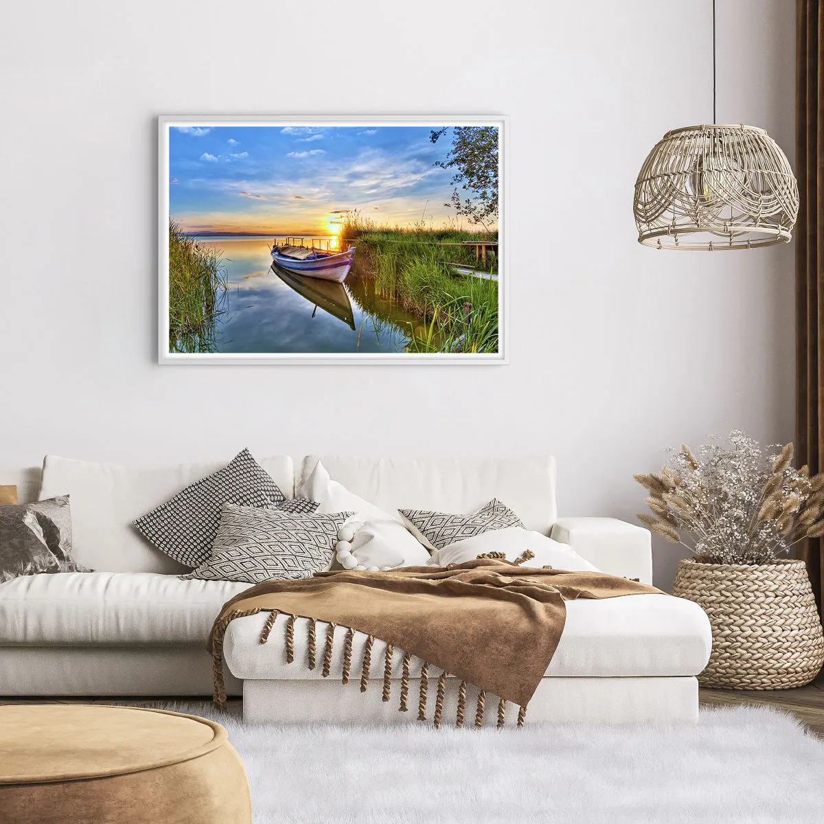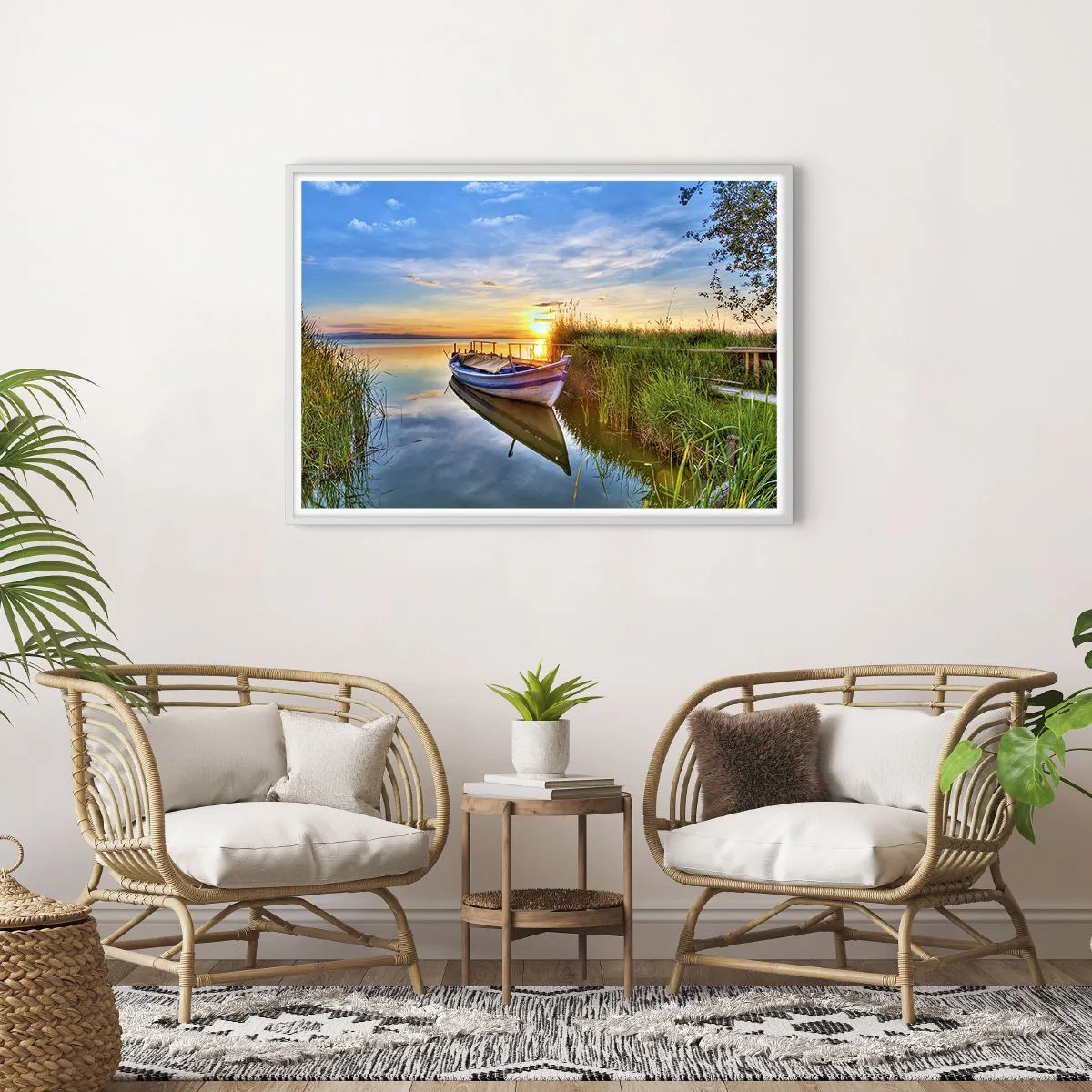 • Landskap, sjö, båt, Landskap, Nautisk, Natur, För kontoret, För arbetsrummet, För matsalen, För badrummet, För hallen, För vardagsrummet, För sovrummet, Blå grön, Nivåer