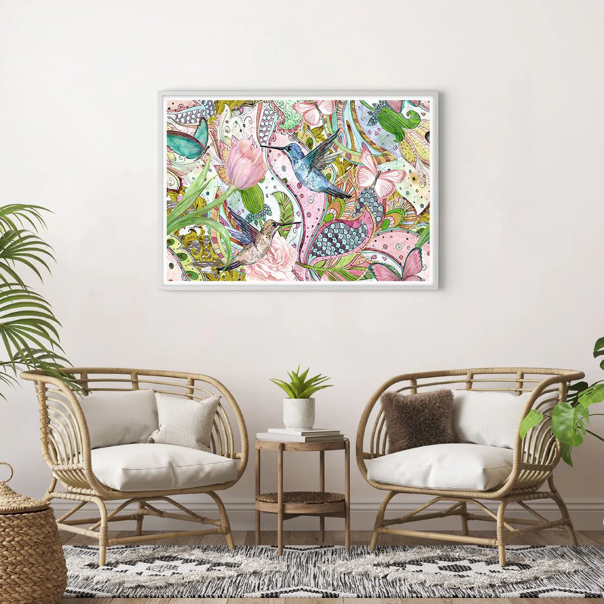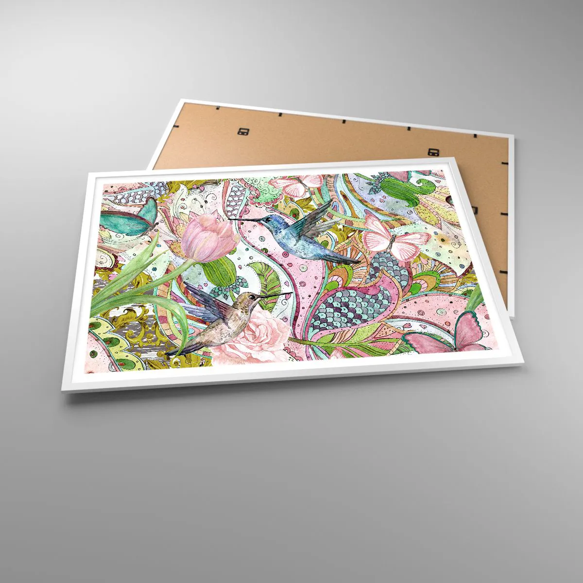 Affisch i vit ram - Inbäddade i klätterväxter - 100x70 cm