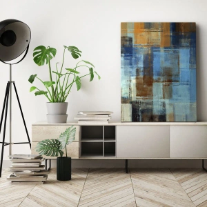 Canvastavla - Bild på duk - Genom blåa gardinen - 30x30 cm