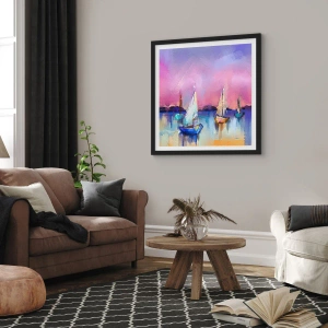 Affisch i svart ram - Abstrakta segelbåtar på en färgglad bakgrund - 50x70cm - Riktning: öppet vatten - Modern väggdekoration för vardagsrum och sovrum ARTTOR