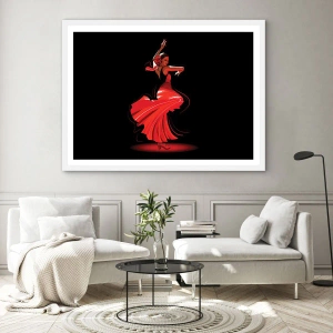 Affisch i vit ram - Flamencos brinnande anda - 91x61 cm