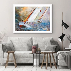 Affisch i vit ram - Springande på vågorna - 70x50 cm