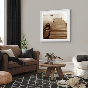 • Landskap, sjö, träbro, Landskap, sjöfart, broar, För kontoret, För arbetsrummet, För matsalen, För badrummet, För hallen, För vardagsrummet, För sovrummet, Brun, Kvadratisk